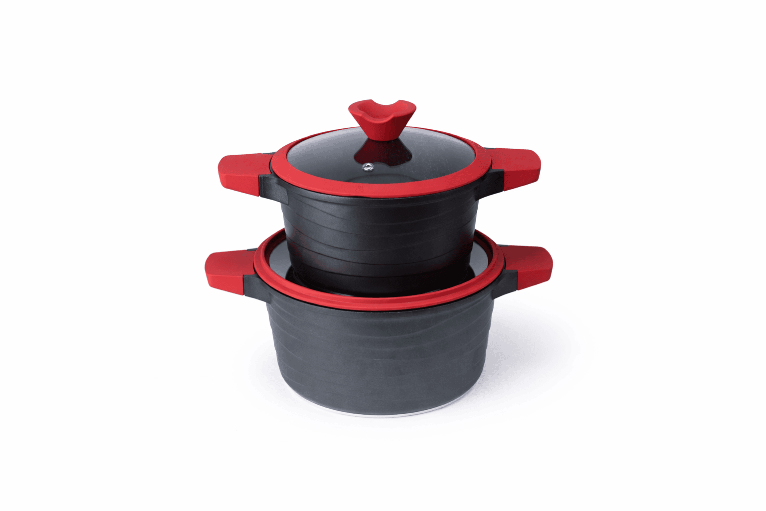Heat-Resistant Accents: The ergonomic handles and lid knobs feature cool-touch red silicone accents that provide a secure grip and stay safe to handle on the stovetop.