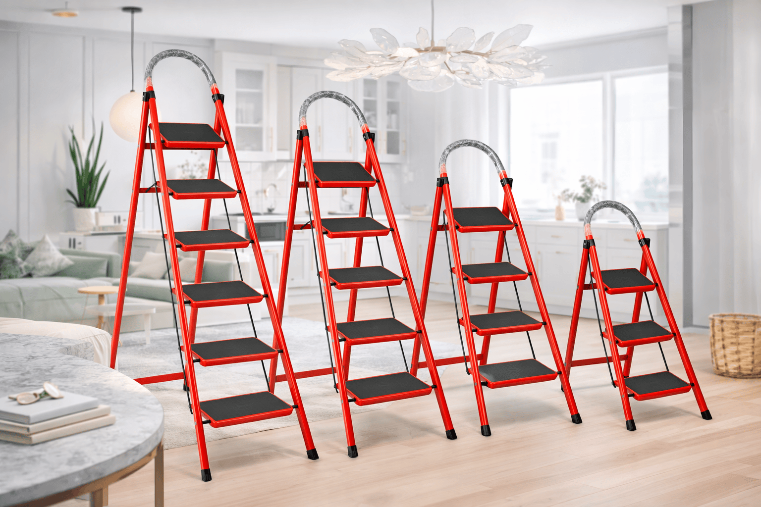 - Space-Saving Design: Designed to be foldable, the ladders collapse into a slim profile for easy storage in closets, garages, or utility rooms when not in use.