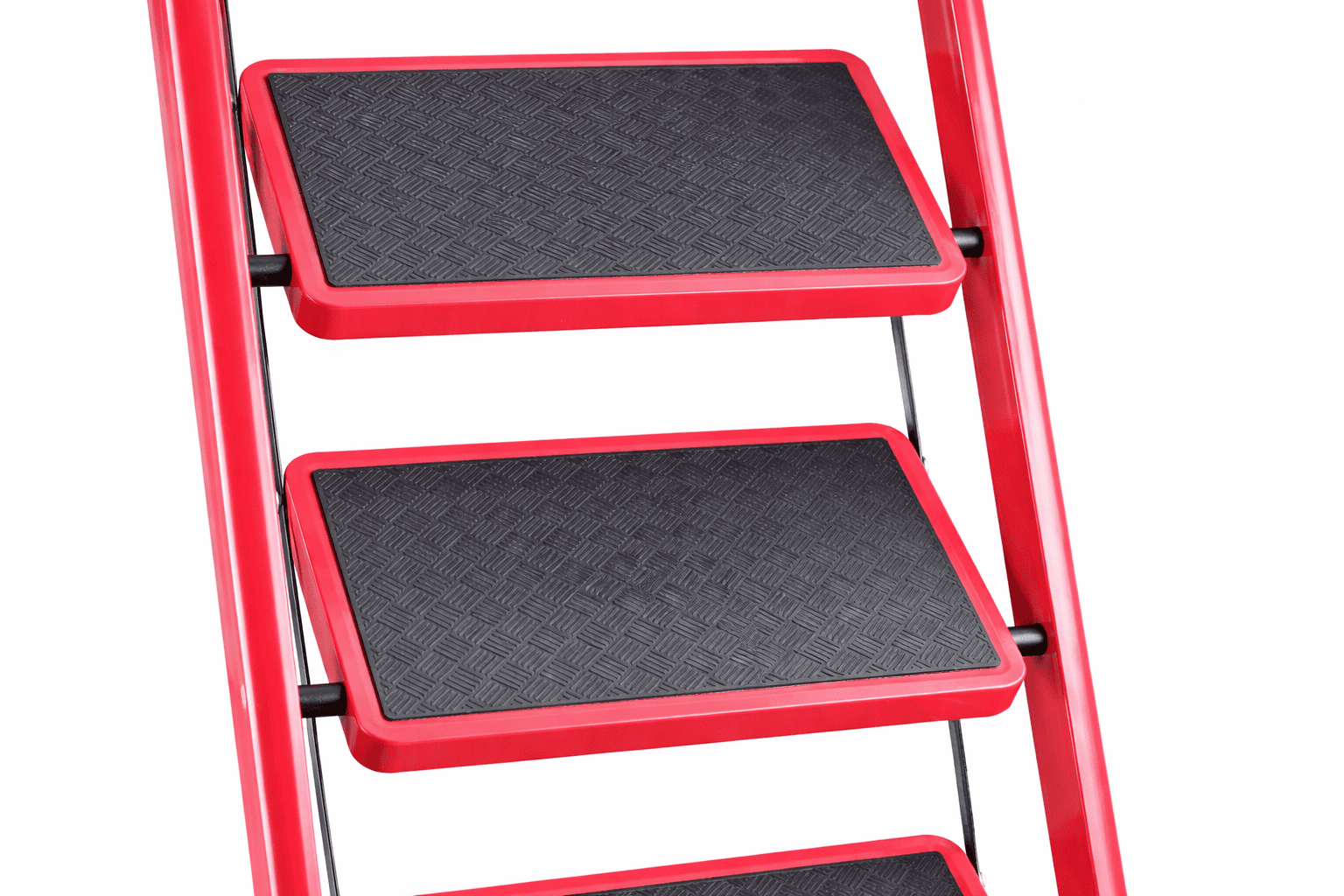 - Safety & Stability: Each ladder features wide steps with a non-slip rubberized surface to provide secure footing and prevent slipping. Non-marring rubber feet caps ensure firm gripping on various surfaces and protect floors from scratches.