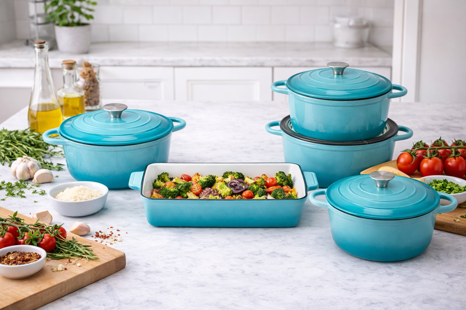 5pcs Turquoise Cast Iron Enameled Luxury Pot Set