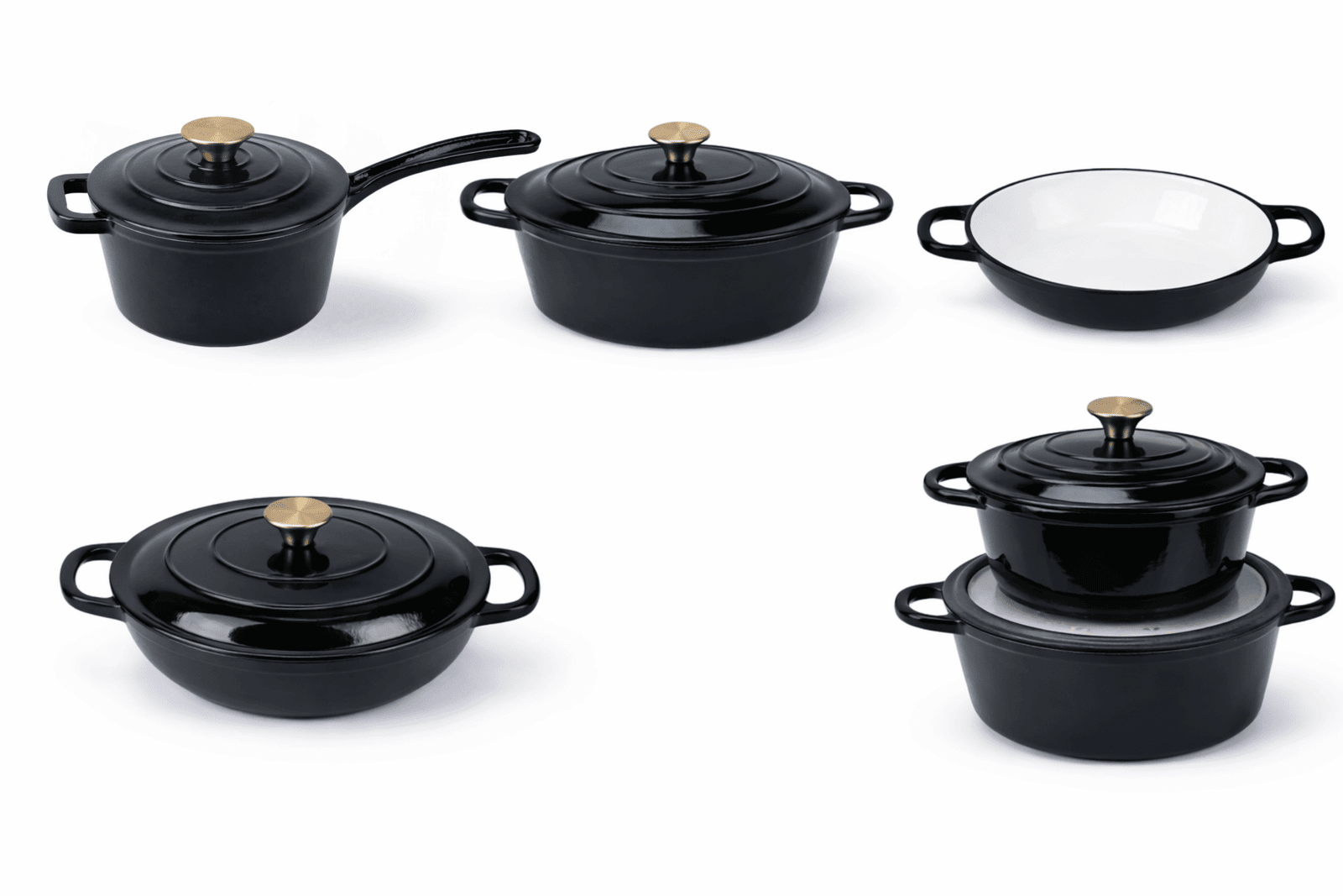 6pcs Vimigo Glossy Dutch Oven Enameled Set with Brass Knub