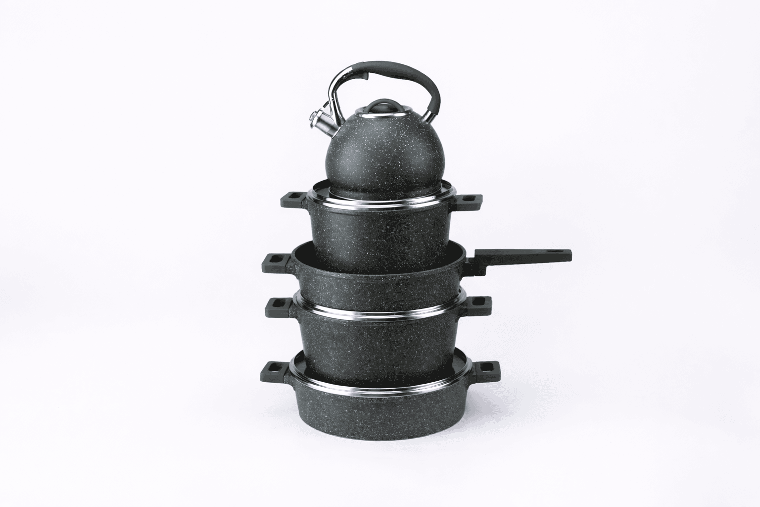 Durable Granite Cookware Set with Whistling Kettle (6-Piece)