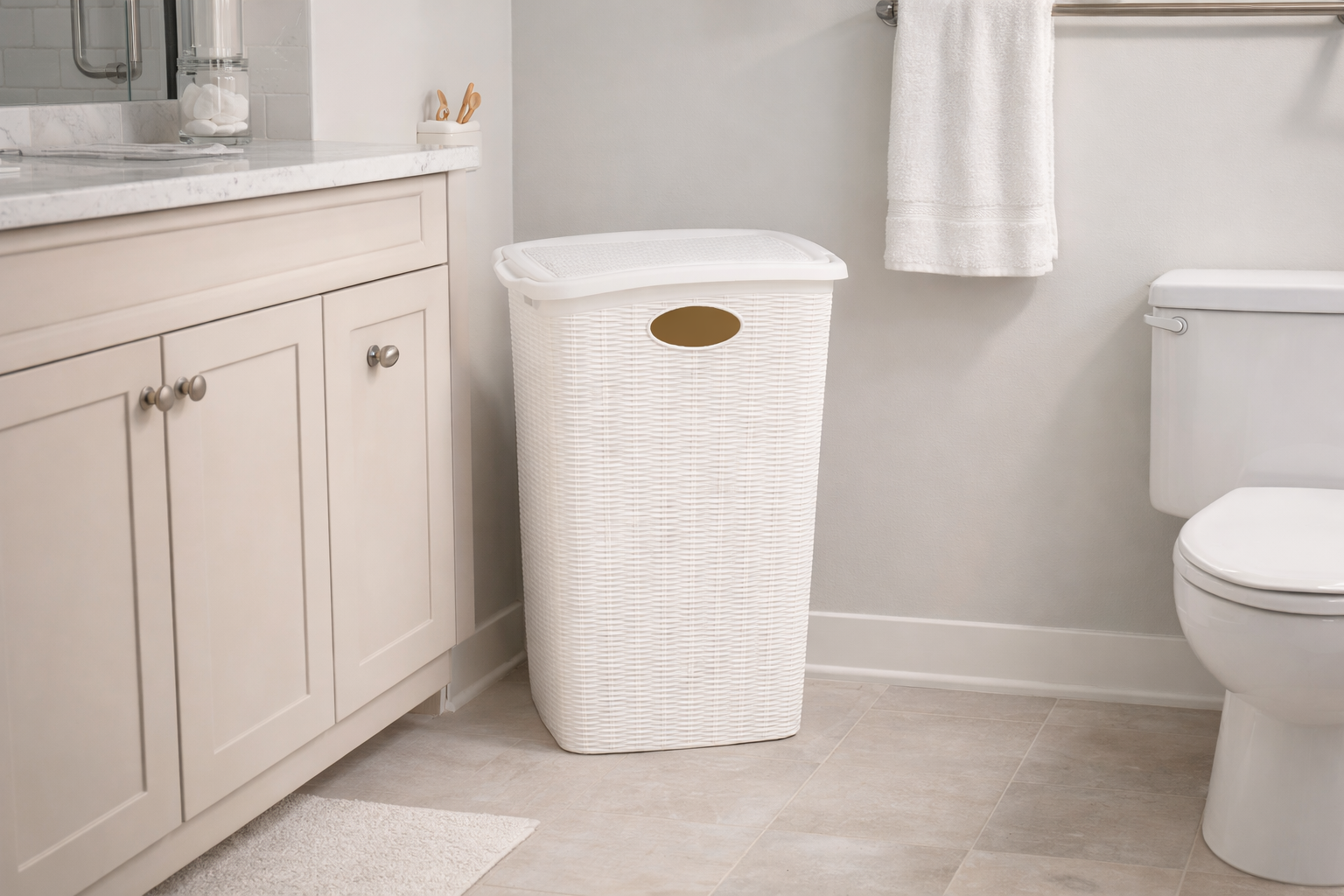 Elegance Rattan-Look Plastic Laundry Hamper