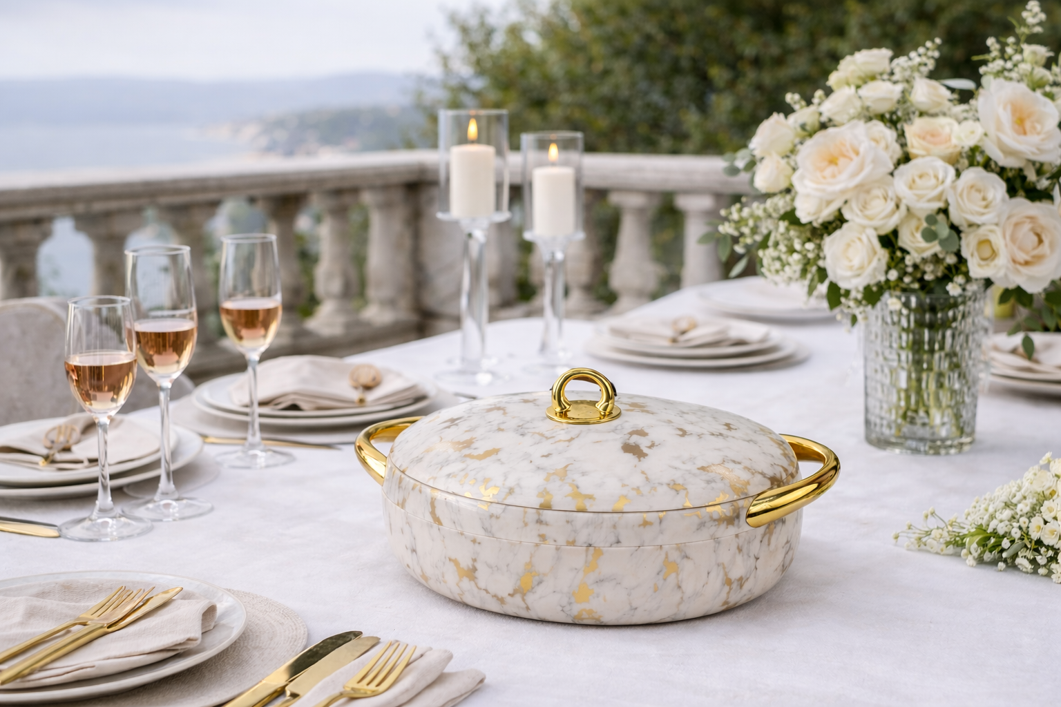 - Gilded Accents: Luxurious, mirror-finish gold-toned handles and lid knobs offer a stunning visual contrast.