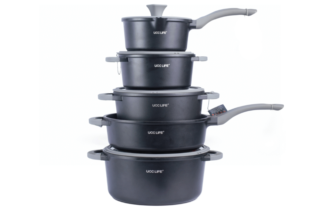 UCCLIFE Non-Stick Stainless Steel Cookware Set with Granite Silicon Lid, & Sauce Pan