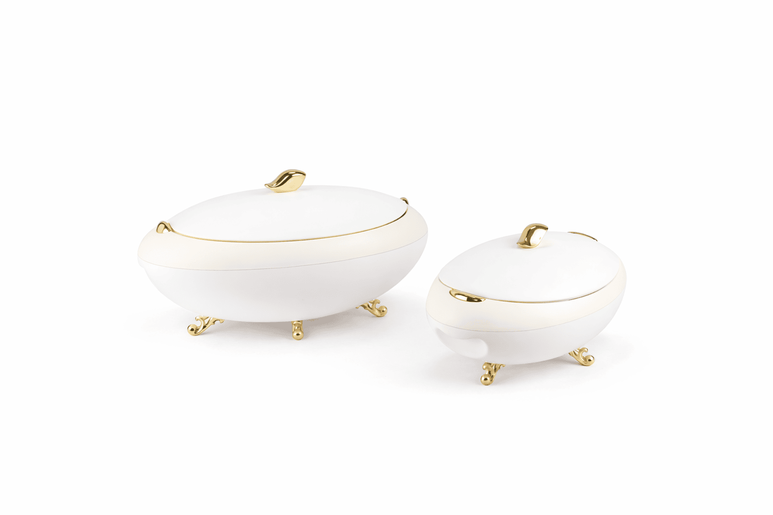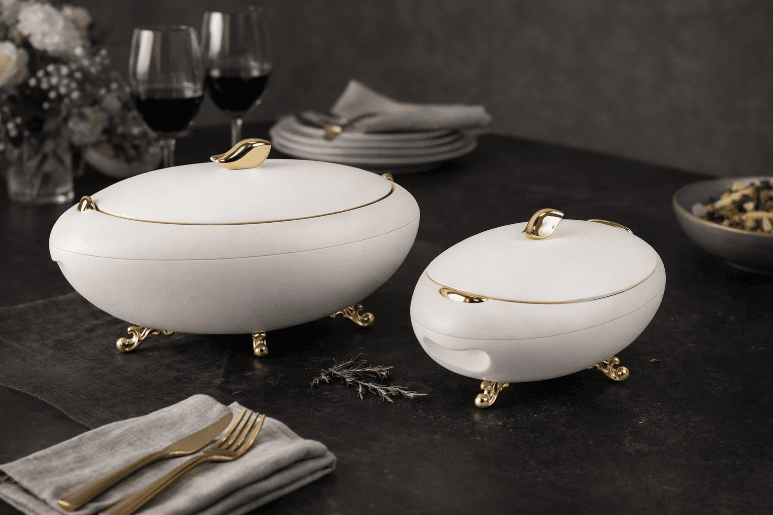 Elegant Oval Luxury Food Warmer – 4L|5L|6L| Insulated Casserole with Gold Leaf Handle Food Warmer