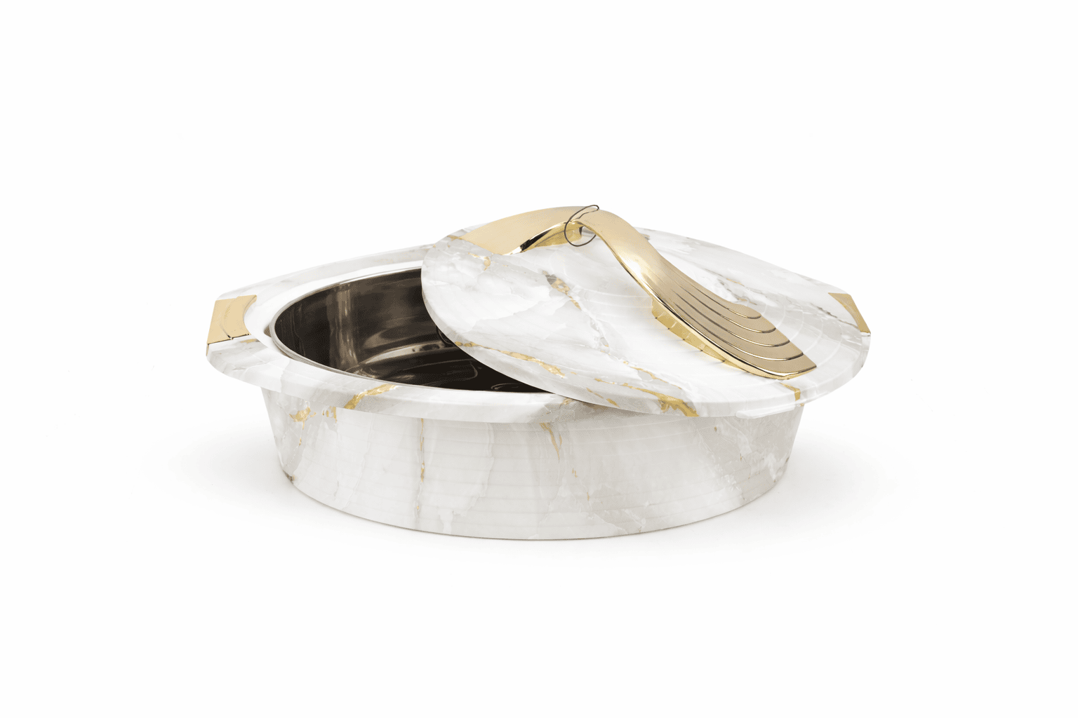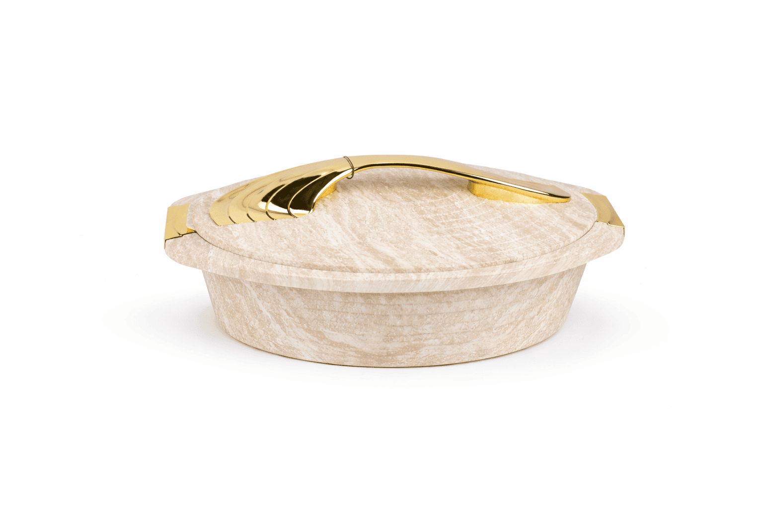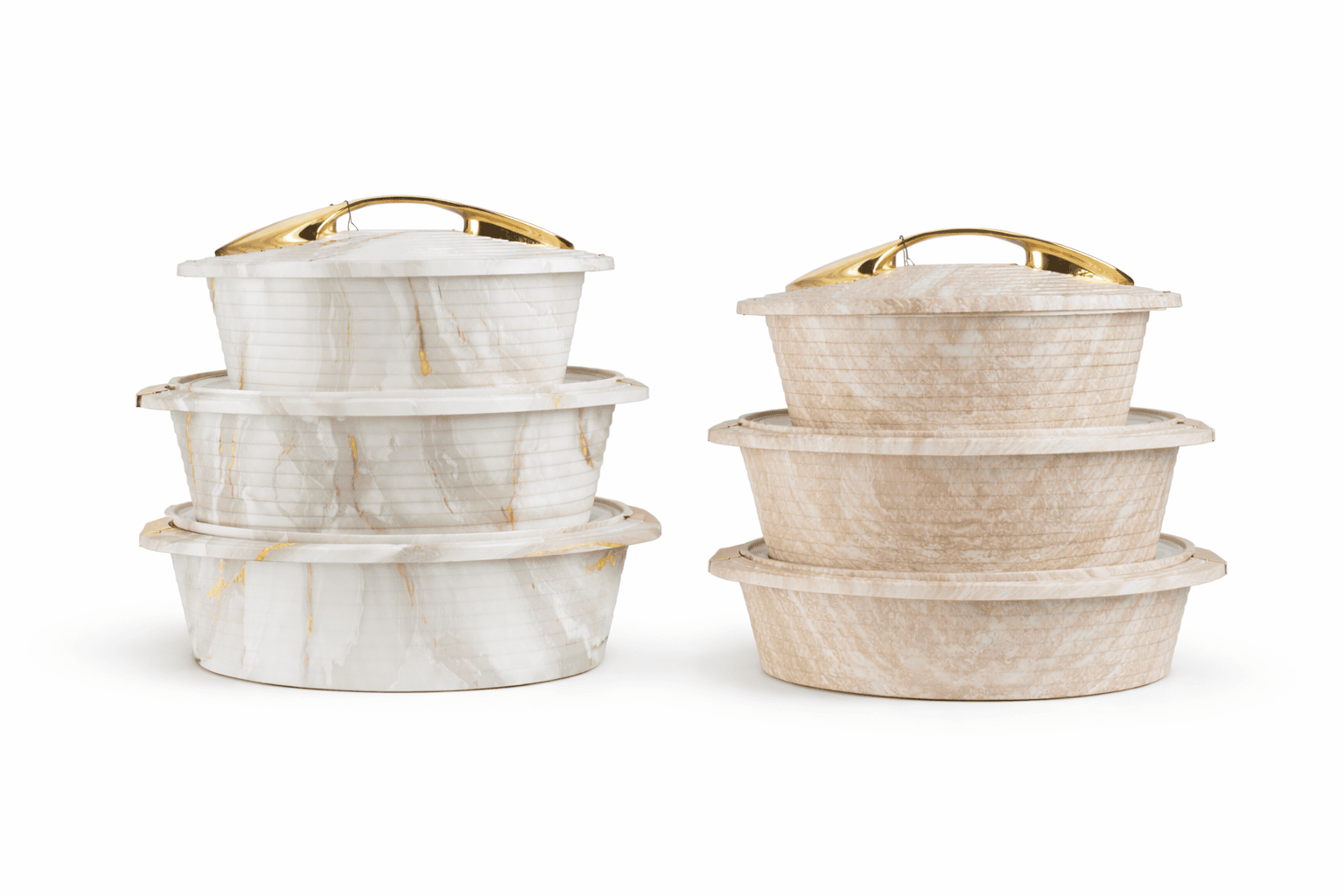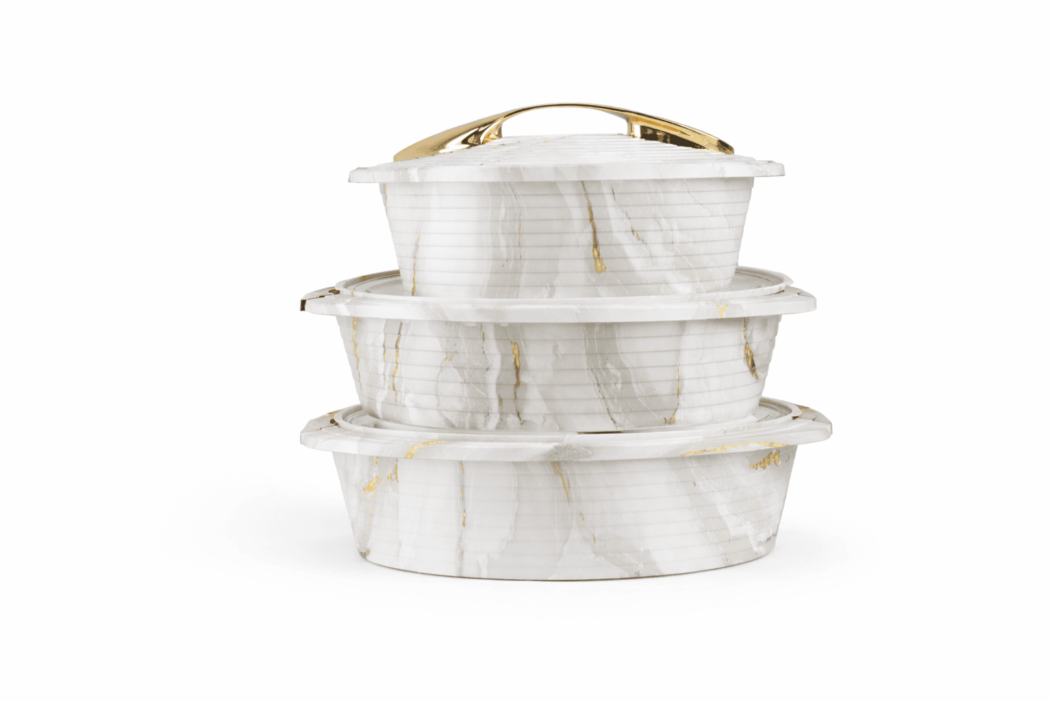 4L+5L+6L 3-Piece Luxury Marble-Patterned Food Warmer Set – Insulated Stainless Steel Casserole Hot Pot with Gold Handles