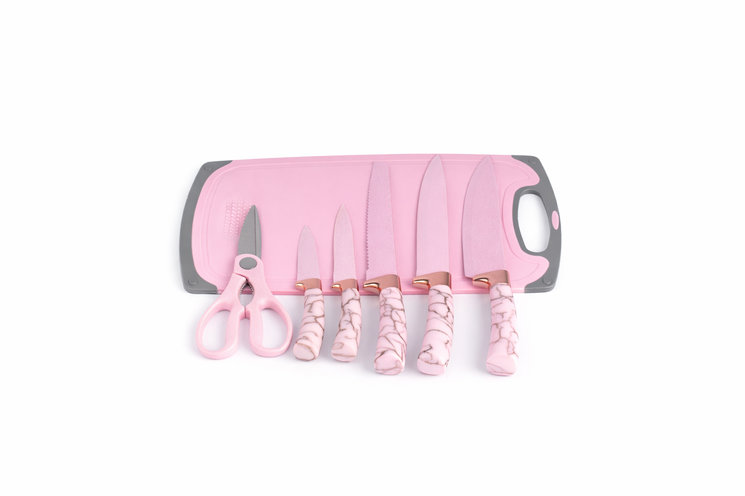 - Premium Knife Set: Features sharp, durable 2Cr13 stainless steel blades with a non-stick coating and a stylish rose gold bolster.