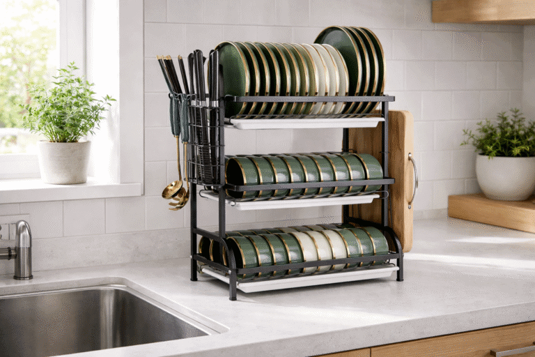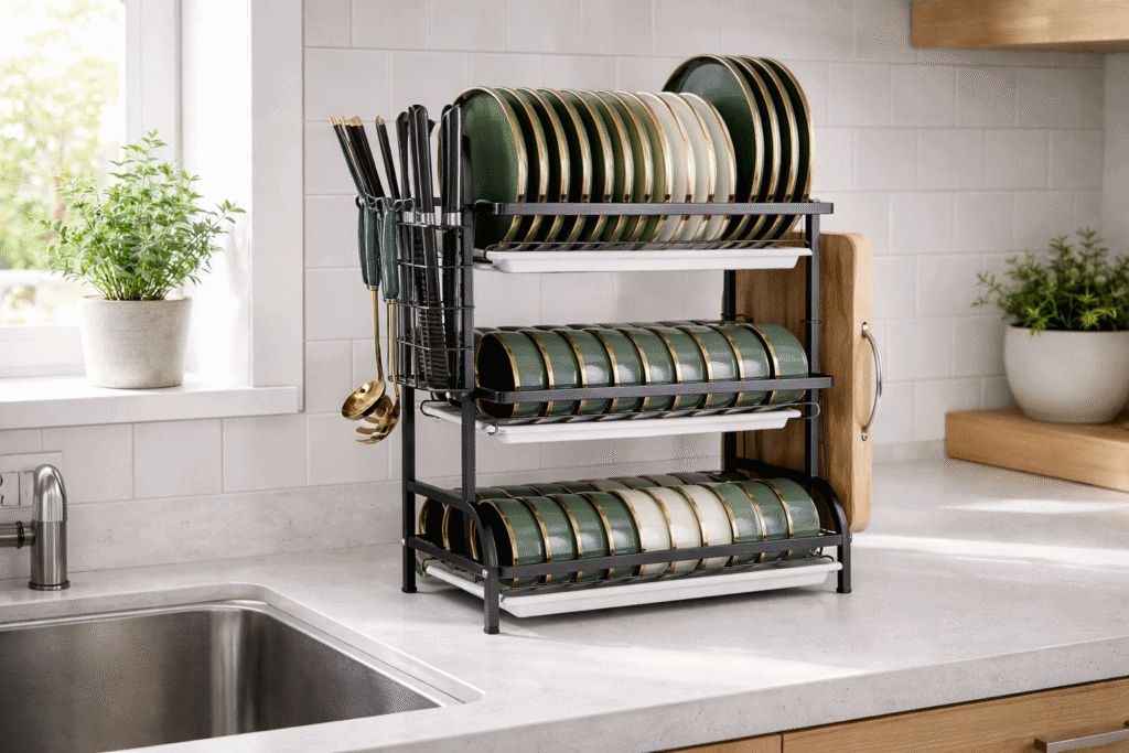 The Multifunctional Bowl Rack is a premium, all-in-one kitchen organization system engineered to transform cluttered sink areas into tidy, efficient workspaces. Its sturdy three-tier structure is specifically designed for over-the-sink placement, utilizing vertical space that often goes unused in standard kitchen layouts. This design not only saves valuable counter space but also promotes superior hygiene by ensuring water from wet dishes channels directly into the sink, preventing bacteria-prone pooling on the countertop.