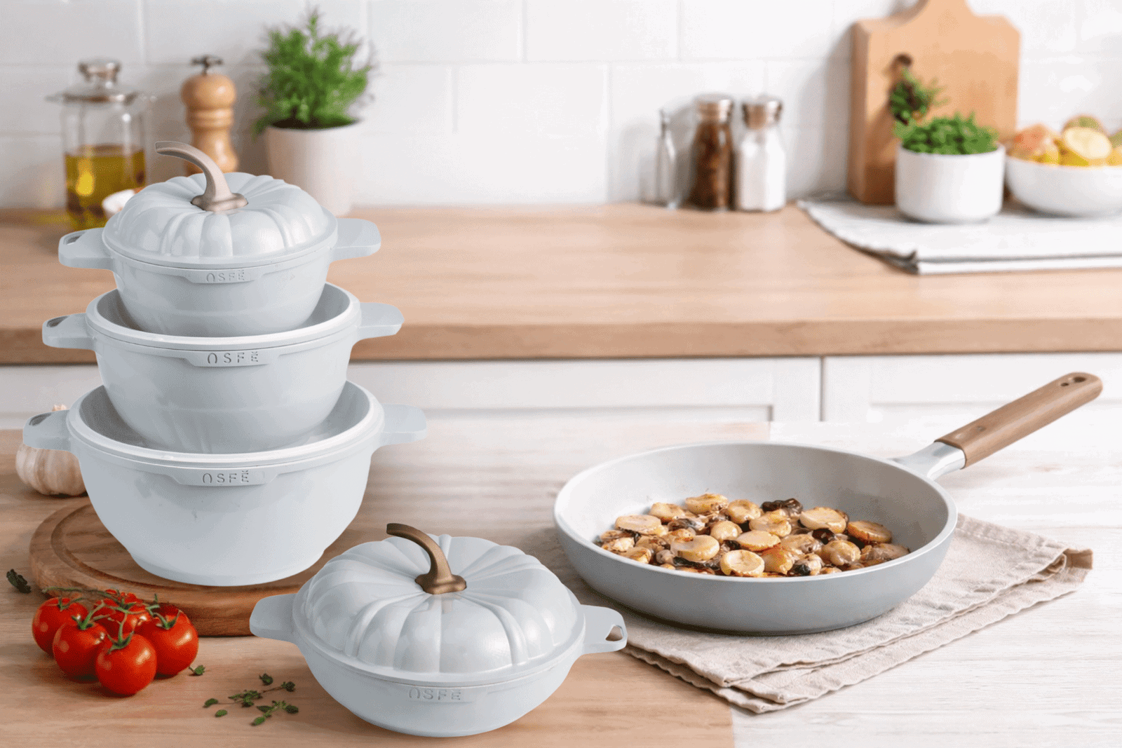 - Distinctive Design:Â The elegant pumpkin shape and matte grey finish offer a unique aesthetic that transitions beautifully from stovetop to table.