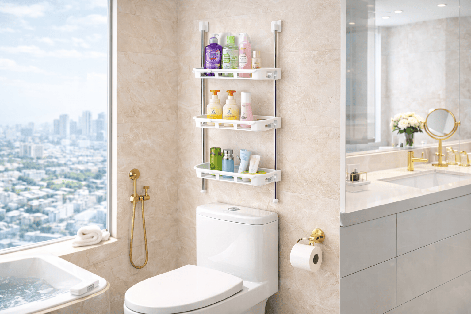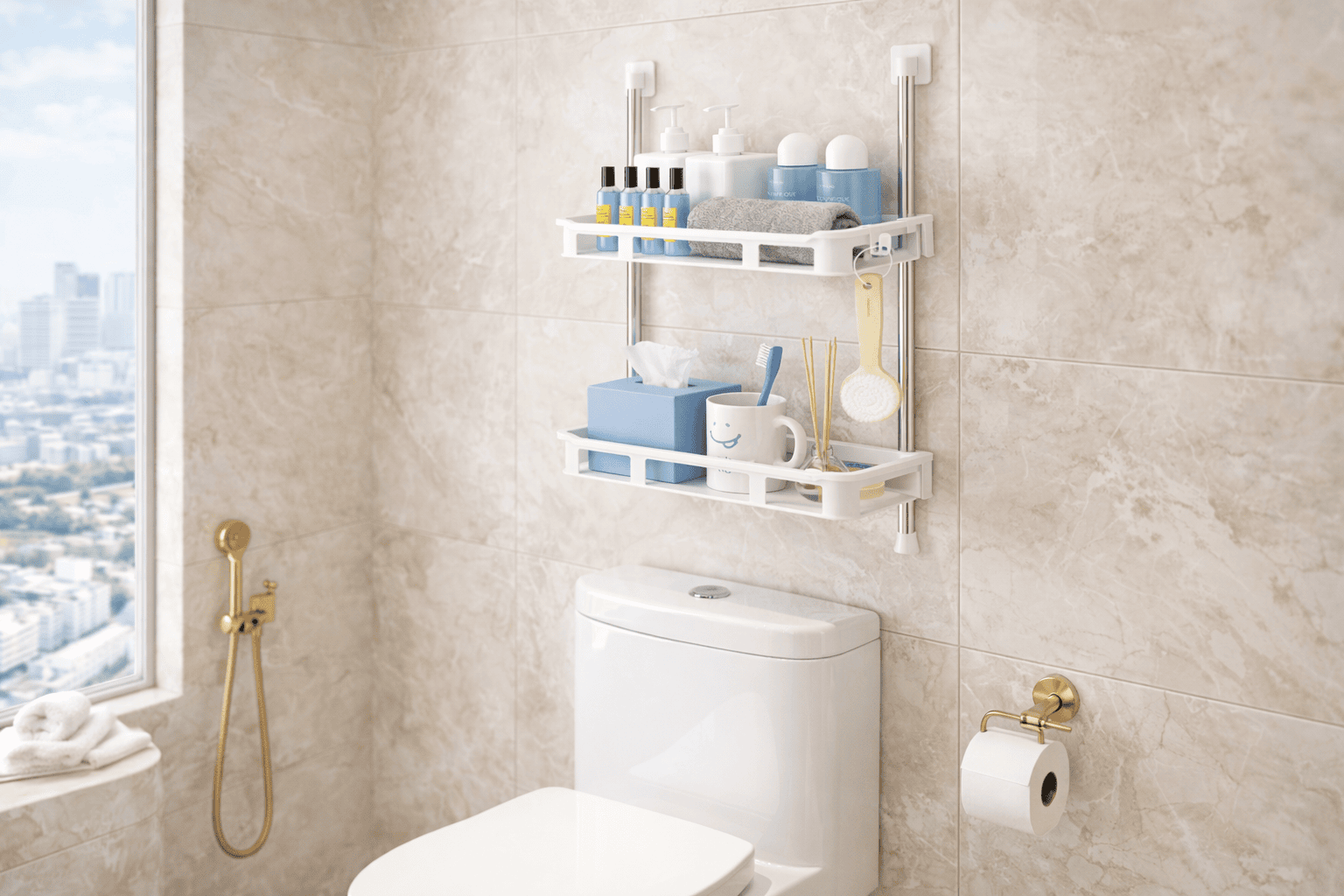 Space-Saving Design: Utilizes wasted vertical space above the toilet for maximum efficiency.