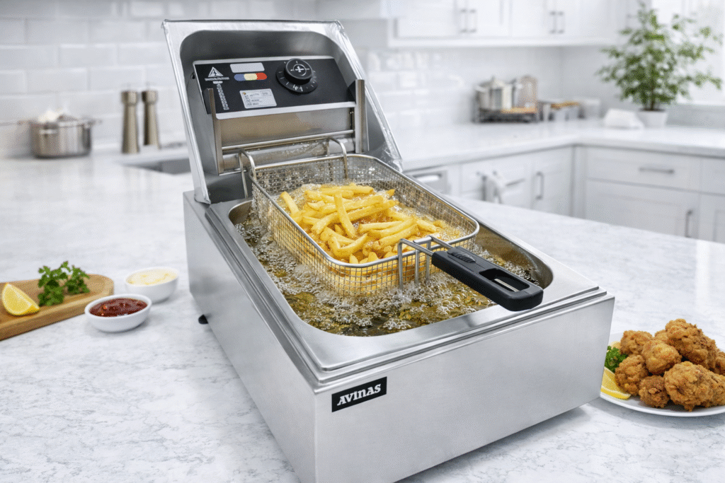 High-Power Performance: Equipped with a 2800W immersion heating element for rapid oil heating and quick recovery times.