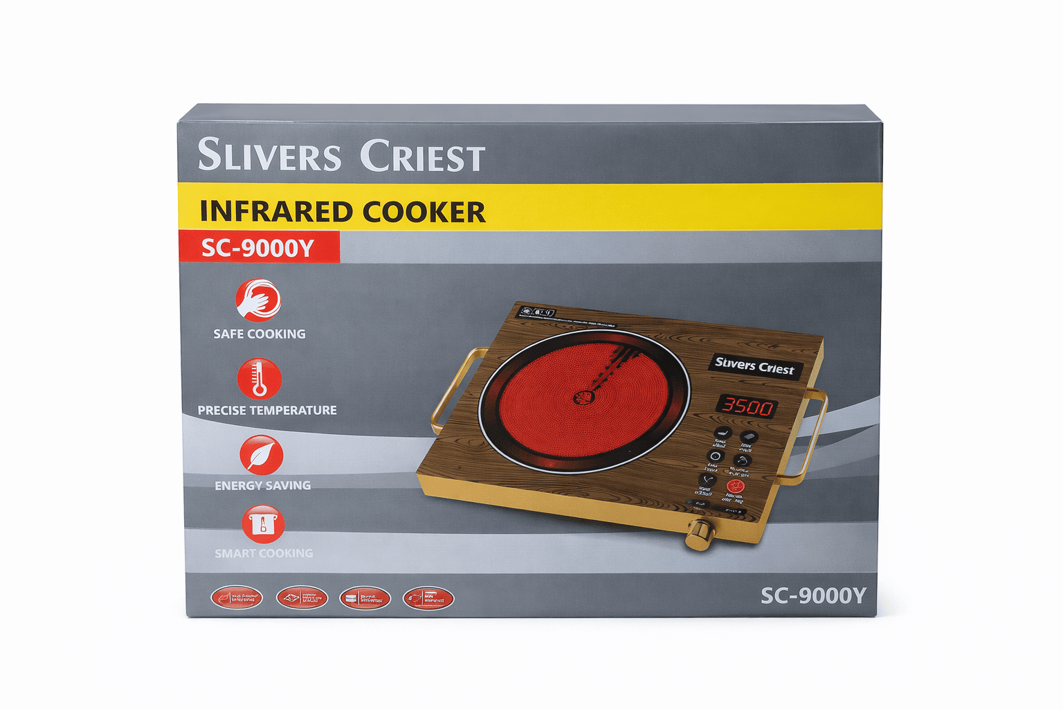 The Slivers Criest SC-9000Y Infrared Cooker is a versatile and energy-efficient solution for modern kitchens, designed to deliver high performance without the limitations of induction hobs. Utilizing advanced ceramic heating elements, it produces radiant heat that penetrates food evenly, ensuring moisture is retained for superior results. Its rapid heating capability makes it “prepaid meter friendly,” as it consumes less energy overall compared to traditional electric stoves