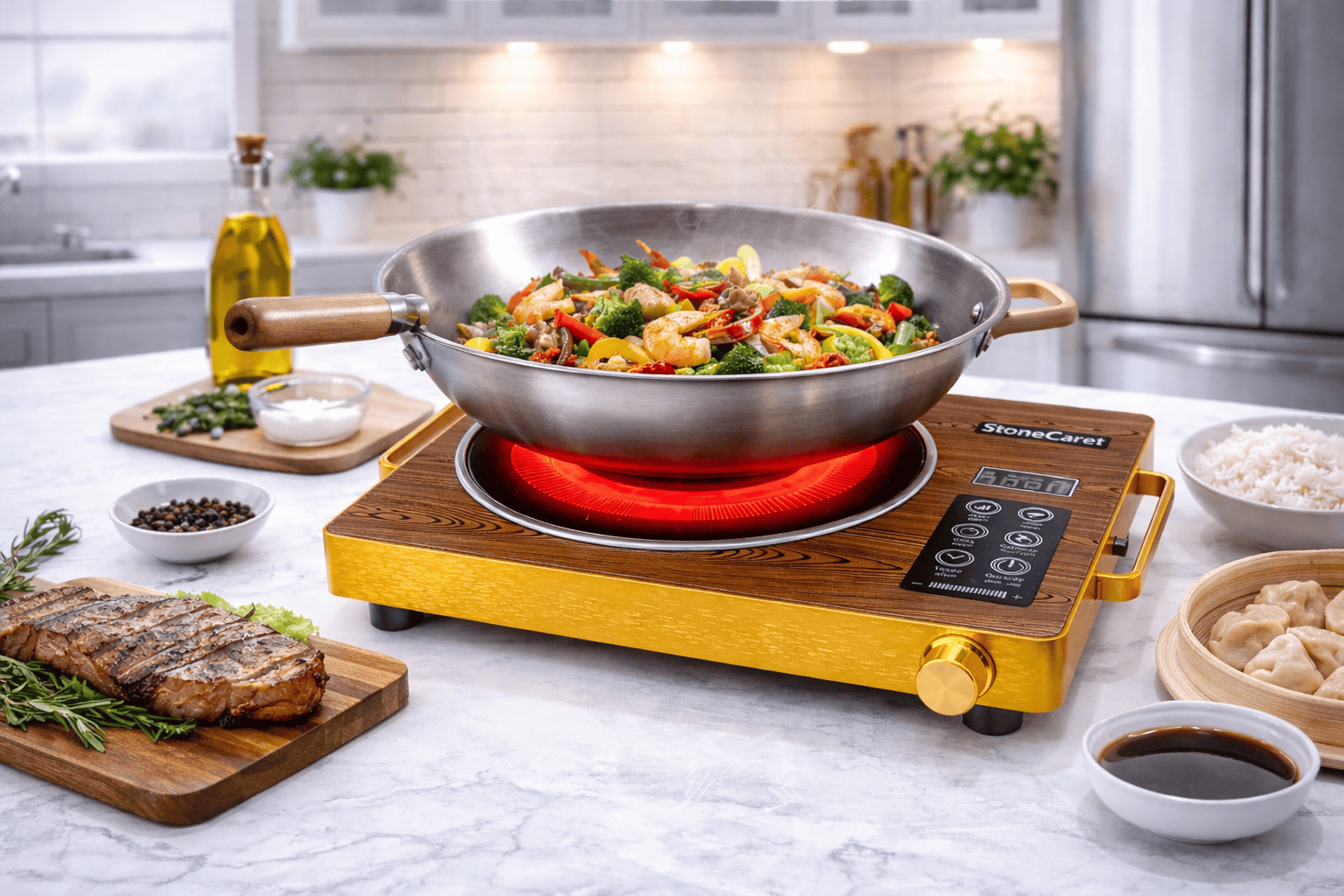 High Power Performance: Delivers a powerful 3500W output for rapid and efficient cooking.